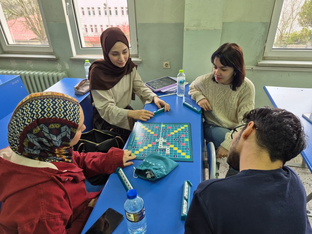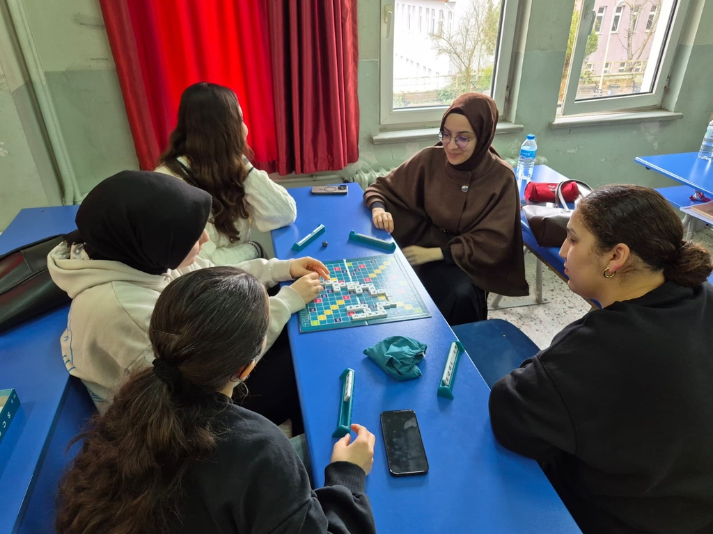 Öğrenciler, yaklaşan Scrabble turnuvası öncesinde kelime bilgilerini, stratejik düşünme becerilerini ve oyun içi karar alma yetkinliklerini geliştirme fırsatı bulduğu hazırlık etkinliğinde hem eğlenceli hem de öğretici bir ortamda bir araya geldiler. Turnuva sürecinde İngilizce kelime dağarcıklarını pekiştirme imkânı elde eden öğrenciler, Scrabble oyununun temel kuralları, puanlama mantığı ve stratejik hamleler konusunda uygulamalı deneyim kazanmaya çalışıyorlar. Etkinlik, yalnızca turnuva öncesi bir prova niteliği taşımakla kalmayıp aynı zamanda öğrenciler arasında iletişimi, iş birliğini ve sosyal etkileşimi destekleyen verimli bir buluşma ortamı sundu.